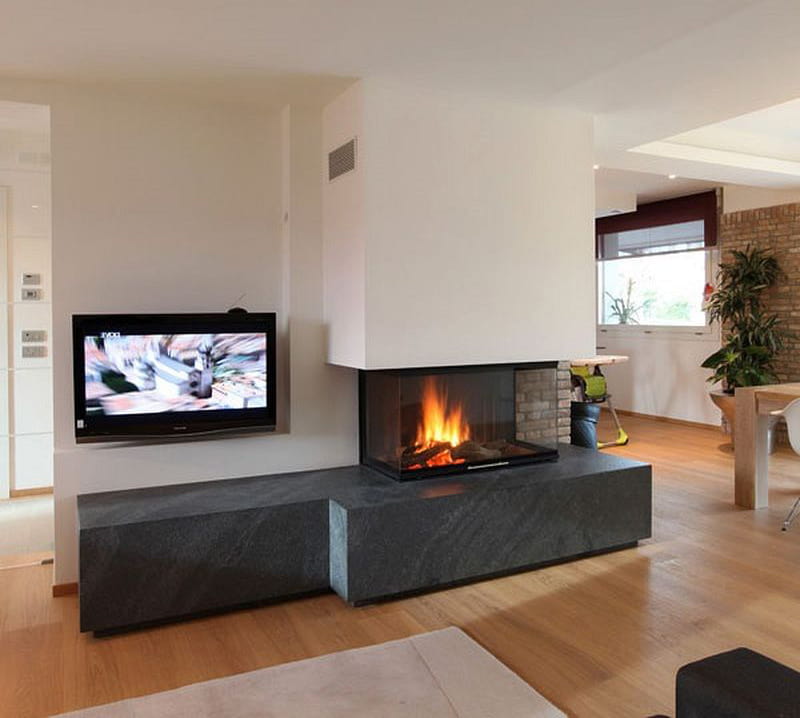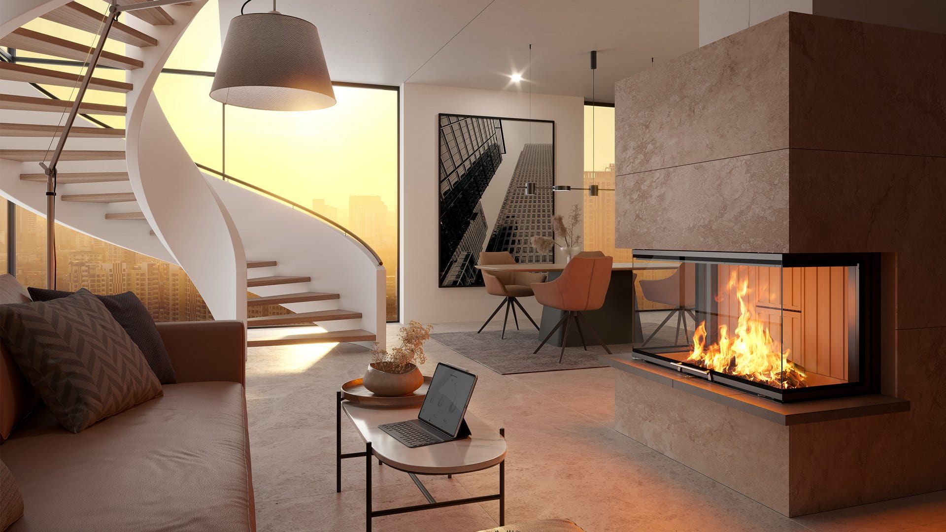 - Premium — самые технологичные и современные модели с безрамным исполнением дверцы, полностью скрытым механизмом подъёма и возможностью электронного управления горением и дверцей. Стекло может быть прямым, двухсторонним, трёхсторонним (как пристенное, так и встраиваемое в перегородку расположение) или же со сквозным обзором. Максимальная мощность очагов — от 10.3 до 14.8 кВт.
