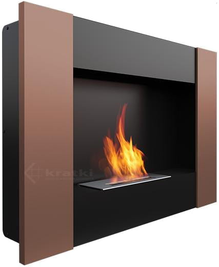 Биокамин Kratki Bravo 2 медь (Биокамин Кратки Браво 2 медь) изготовлен из термостойкой стали в черном цвете с вертикальными элементами под медь. Камин имеет форму горизонтального прямоугольника со строгими линиями, предназначен для встраивания в нишу. Перед установкой следует позаботиться о надежной теплоизоляции конструкции. Работает устройство на биотопливе, которое не выделяет дыма, копоти или других вредных веществ при горении. Линия огня - 220 мм.