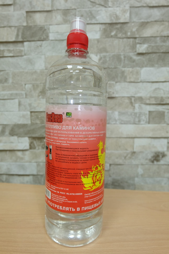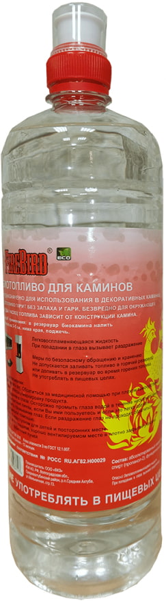 Биотопливо FireBird Eco 1,5 литра (ФаерБерд Эко 1.5 литра) используется в качестве топлива для биокаминов. Жидкость поставляется в бутылке объёмом 1.5 литра с удобной крышкой. Небольшой вес позволит без труда заправить камин даже хрупкой девушке. Смесь не содержит ароматических добавок, что подойдёт людям, склонным к аллергическим реакциям.