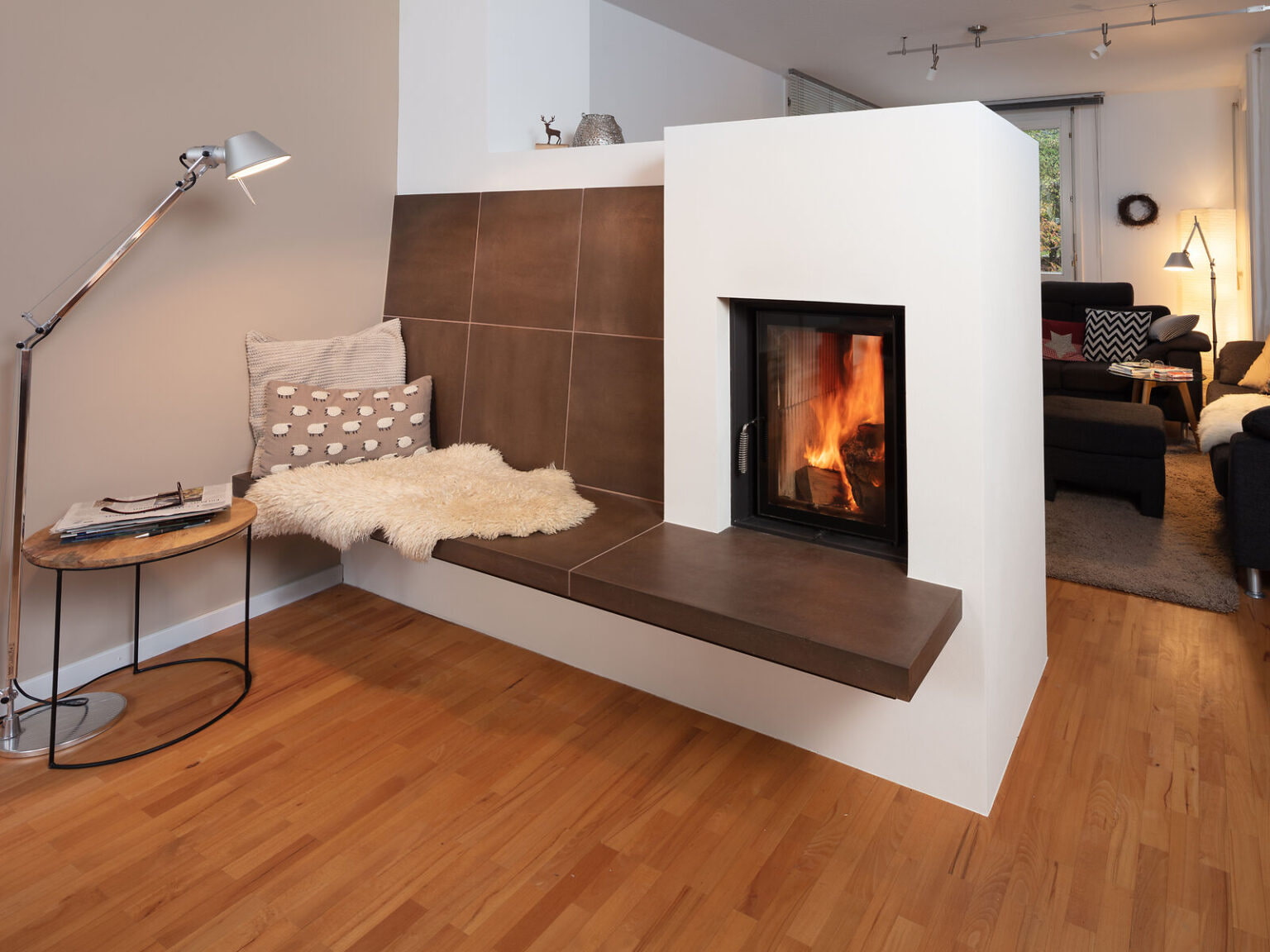 Абсолютное большинство тепловых лучей проходит через керамическое стекло в помещение. Расстояние для размещения мебели или горючих элементов от топки должно составлять не менее 120 см.