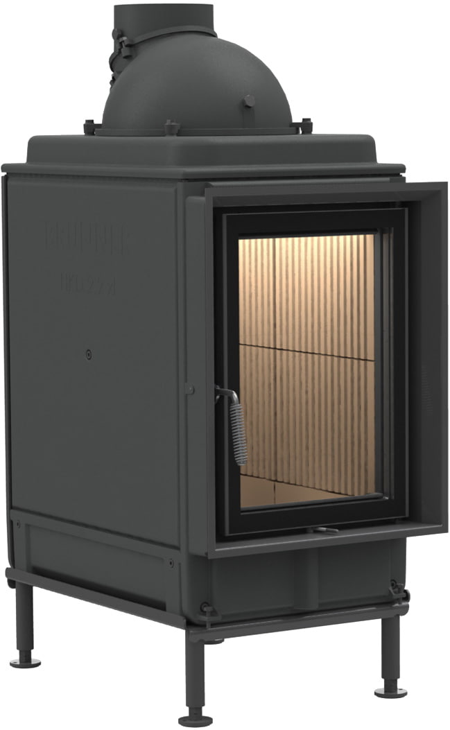 Номинальная мощность равна 13 кВт, чего хватает для обогрева помещения в 325 м³. У топки прямое жаропрочное стекло, обрамление вокруг него можно выбрать самостоятельно. Дверца с боковым открыванием. Ширина дверцы — 370 мм, высота — 524 мм.
