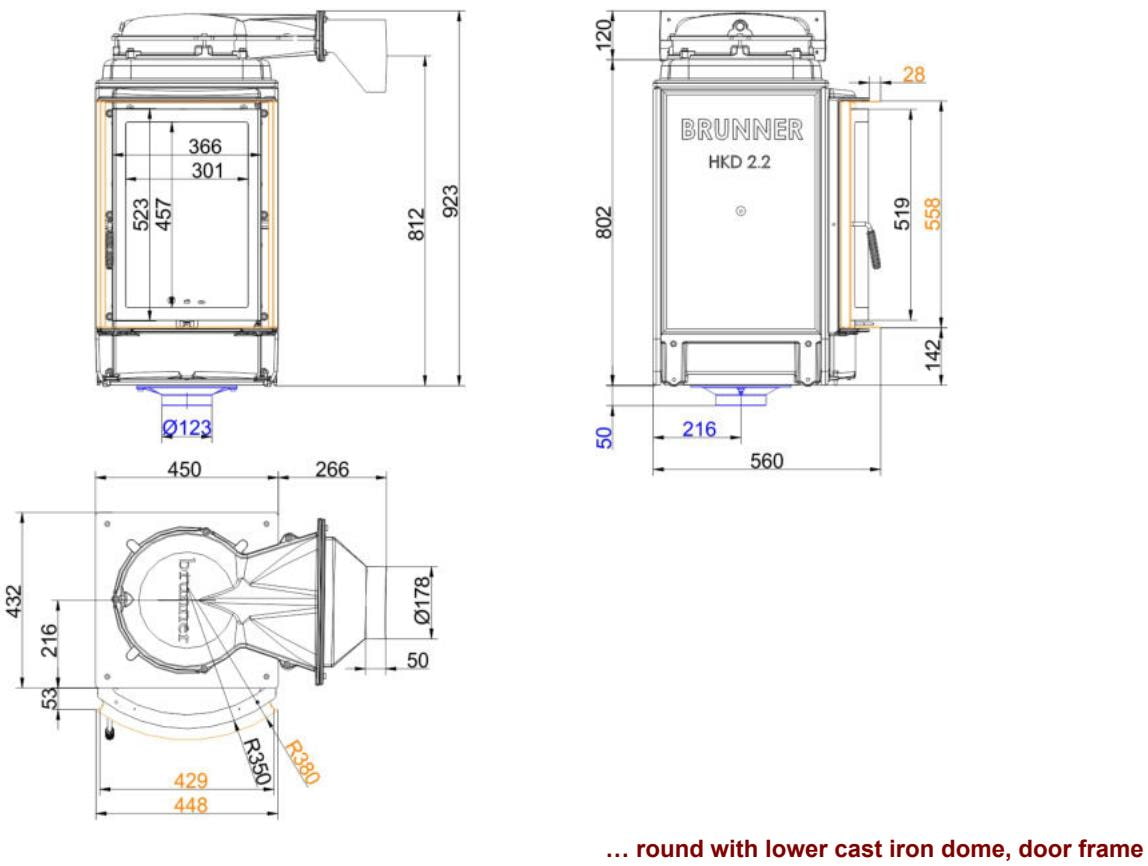 Также все модели Brunner имеют возможность подвода воздуха на горение извне (из соседнего помещения или улицы).