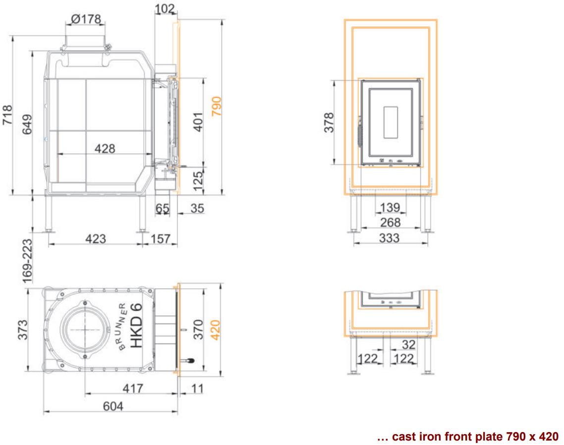 Каминная топка Brunner HKD 6.1 Чугунная дверца (Бруннер HKD 6.1 Чугунная дверца)