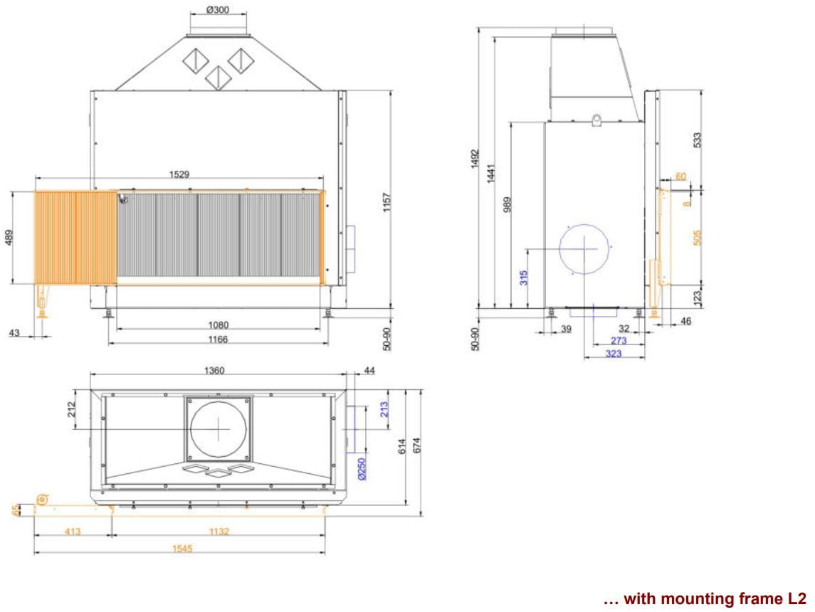 Все модели оснащаются стальной монтажной рамкой, футеровка топочных камер выполнена из чёрного чугуна с рифлёной поверхностью. При желании покупателя топку можно дооснастить дополнительными боковыми чугунными расширениями топки.