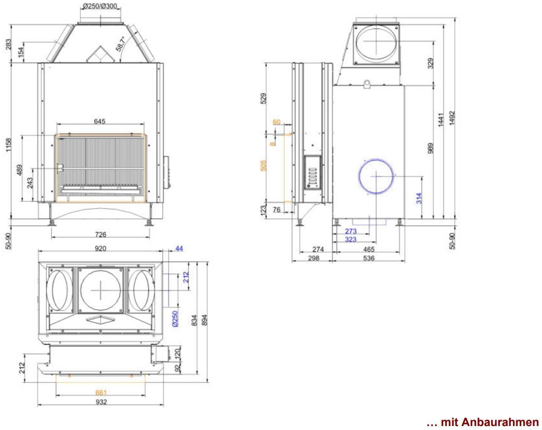 Стальной корпус очагов Urfeuer оснащен сложной двустенной конструкцией с воздухоотводом и "воздушной завесой" во фронтальной части, обеспечивающими баланс давления, что препятствует проникновению дымовых газов в помещение. Мощность устройств — от 5.5 до 10 кВт.