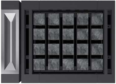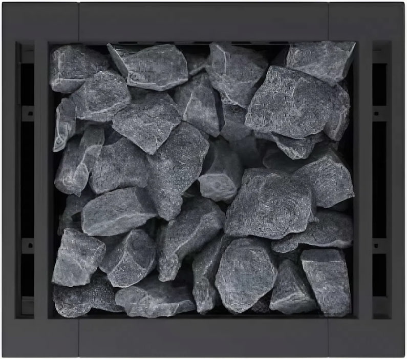 Каменка вмещает 35 кг камней. Специально для данной серии изготавливаются цельные кубические камни для заполнения верхней части каменки.