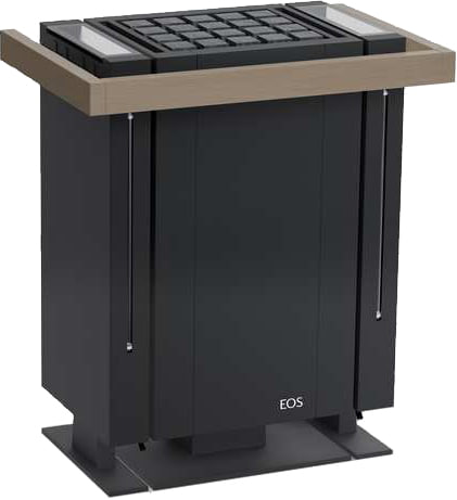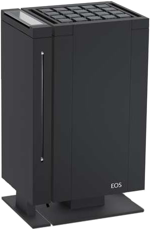 Устройство с напольным расположением. Корпус имеет кубическую форму на ножке, изготовлен из нержавеющей стали и окрашен в цвет антрацит. Фронтальная панель может быть из матовой нержавеющей стали или окрашена в цвет корпуса. Плоская задняя панель и встроенная клеммная коробка позволяют разместить печь в центре парной или перед фасадом из стекла.