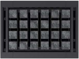 Устройство с напольным расположением. Корпус имеет кубическую форму на ножке, изготовлен из нержавеющей стали и окрашен в цвет антрацит или в черно-белый цвет. Фронтальная панель может быть из матовой нержавеющей стали или окрашена в цвет корпуса. Плоская задняя панель и встроенная клеммная коробка позволяют разместить печь в центре парной или перед фасадом из стекла.