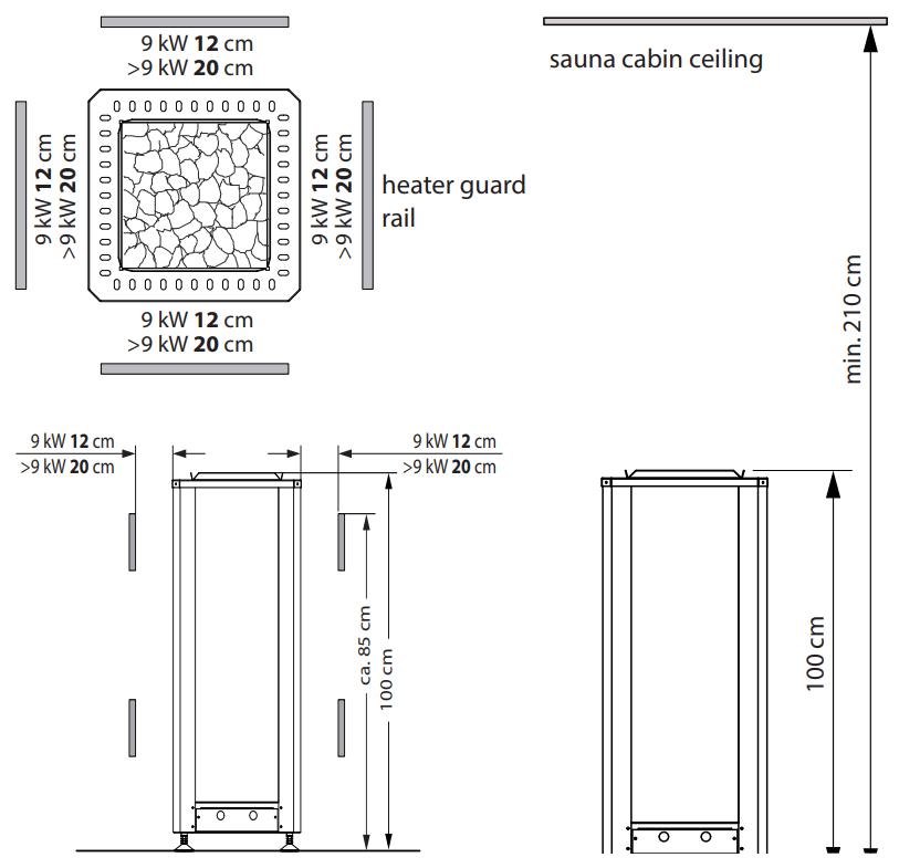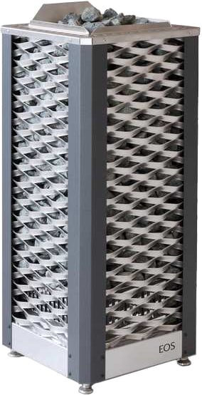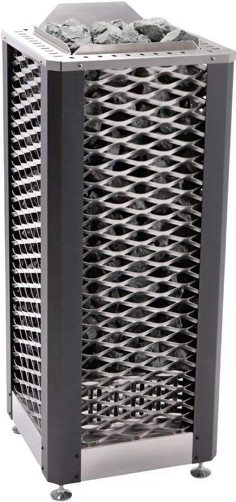 Устройство с напольным расположением. Корпус имеет прямоугольную форму, изготовлен из нержавеющей стали, грани окрашены в цвет антрацит. Со всех четырёх сторон установлена уникальная сетка каменки в виде переплетающихся лент, предотвращающая выпадение даже самых мелких камней. Кабель-каналы, расположенные в основании печи, позволяют разместить печь в центре парной или перед фасадом из стекла. Каменка вмещает 100 кг камней.