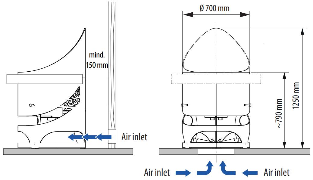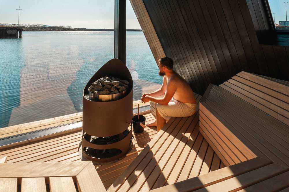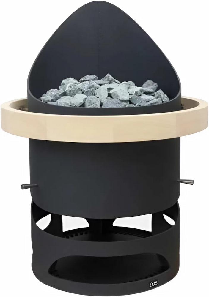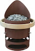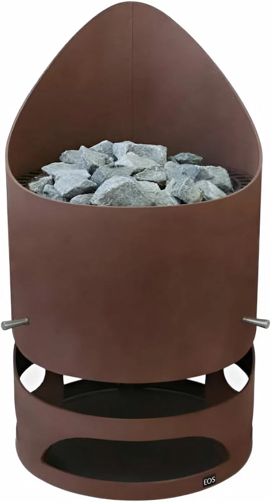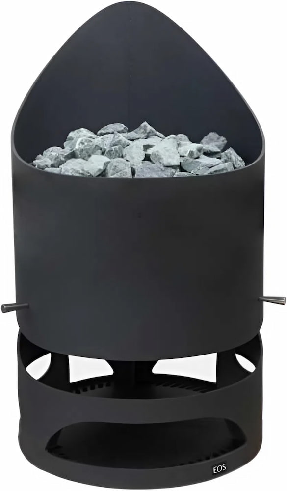 Устройство с напольным расположением. Корпус имеет необычную округлую форму, изготовлен из цельной стали толщиной 8 мм. Он может быть окрашен в цвет антрацит, коричневый или черный. Каменка вмещает 100 кг камней. Дополнительно печь можно оснастить рейлингом, выполненным из ореха или абаша, охватывающим корпус на 270 или 360°.