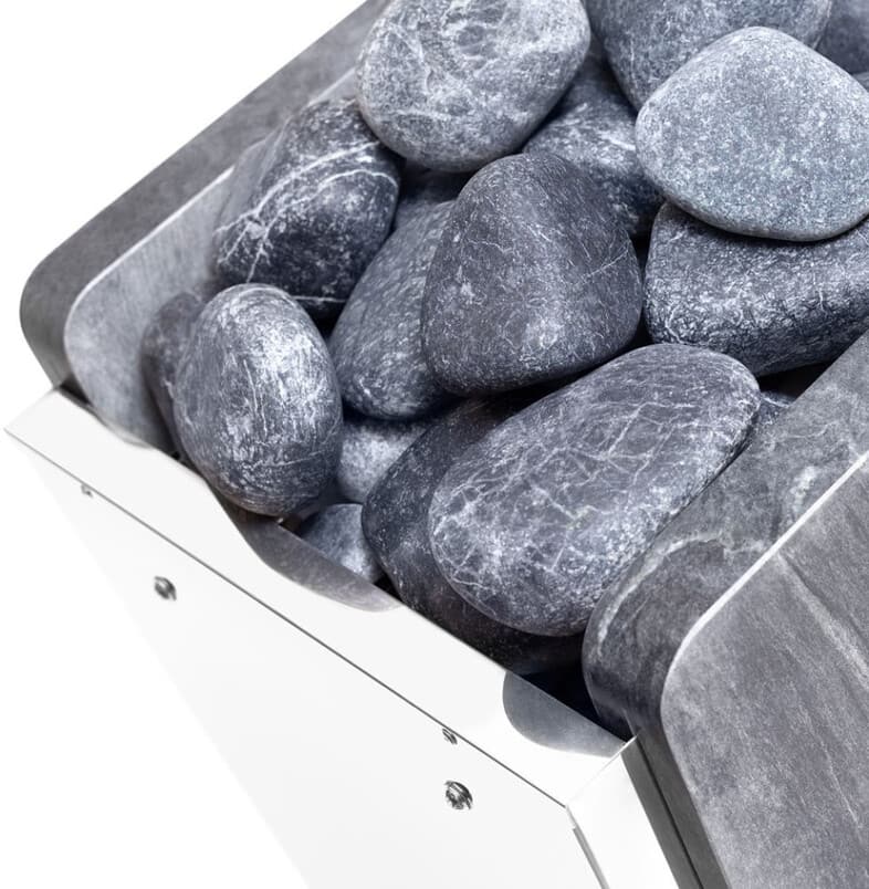 Но все же главным параметром является мощность устройств, диапазон которых составляет от 2 до 36 кВт, что подходит для парных объемом от 2 до 70 м³. Открытая каменка вмещает 20—120 кг камней. Некоторые модели вместо привычных камней в каменку используют плиты из змеевика или талькохлорита с нанесенными на них распилами (поставляются в комплекте). В большей степени нагревательными элементами выступают ТЭНы, хотя наряду с ними представлены модели с низкотемпературными лентами (НТЛ).