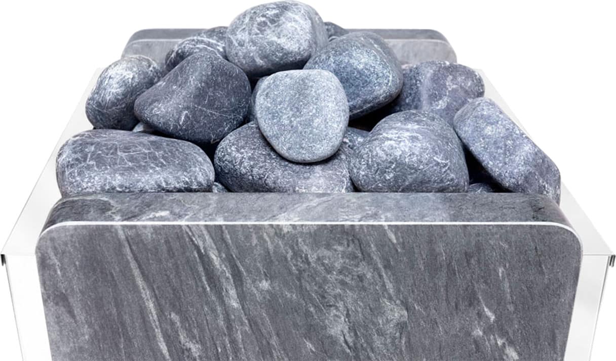 Корпус со строгими линиями изготовлен из нержавеющей стали, устойчивой к коррозии. Фронтальная и тыльная стенки облицованы четырьмя плитами из натурального камня талькохлорит толщиной 4 см. Облицовка увеличивает теплоотдачу и теплоемкость устройства, а также позволяет печи вписаться в любой интерьер, придавая ему изысканность.