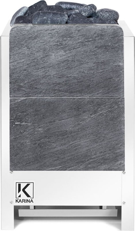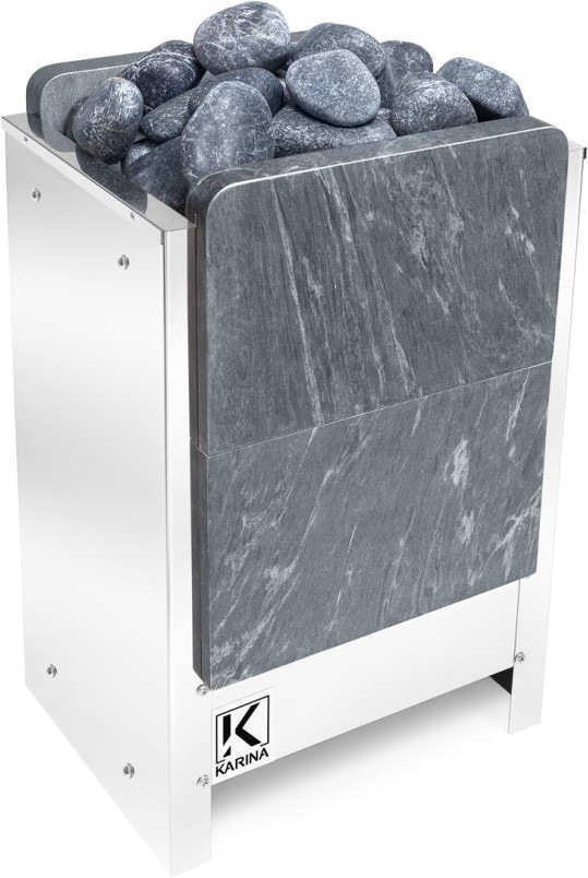 Электрические печи Karina представлены различными по внешнему виду и габаритам моделями: каменки могут быть в виде цилиндрической сетки, стильного прямоугольного кожуха без лишних деталей либо облицованы натуральным камнем. Кроме эстетического вида, облицовка защищает от жесткого инфракрасного излучения внутреннего разогретого электронагревательного блока и увеличивает теплоемкость. Материал отделки представлен плитами камня: амфиболит, змеевик, онего грин или талькохлорит.