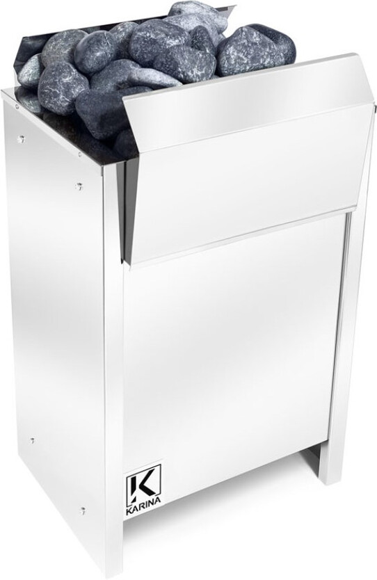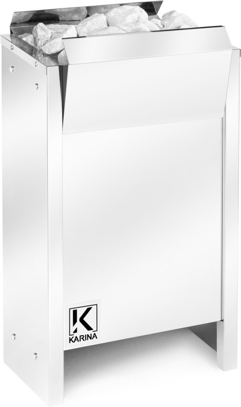 Электрические печи Karina представлены различными по внешнему виду и габаритам моделями: каменки могут быть в виде цилиндрической сетки, стильного прямоугольного кожуха без лишних деталей либо облицованы натуральным камнем. Кроме эстетического вида, облицовка защищает от жесткого инфракрасного излучения внутреннего разогретого электронагревательного блока и увеличивает теплоемкость. Материал отделки представлен плитами камня: амфиболит, змеевик, онего грин или талькохлорит.