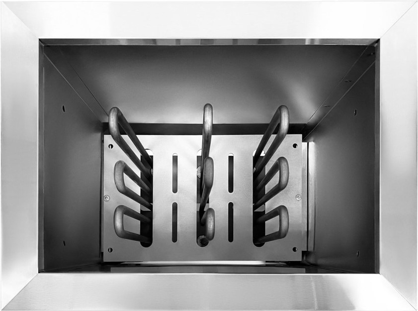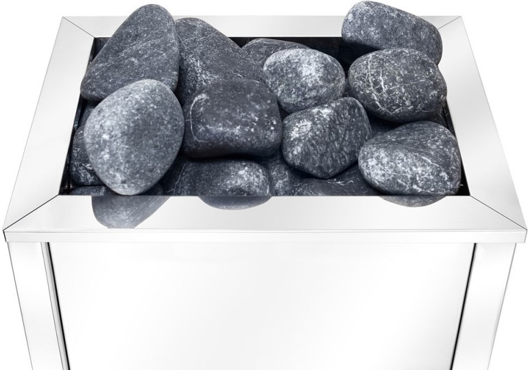Открытая каменка вмещает от 50 до 150 кг камней. Диапазон мощности составляет 6 — 36 кВт и рассчитан на парные объемом от 7 до 60 м³. Подходит для режима "Финской сауны". Нагрев происходит за счет ТЭНов из нержавеющей стали, что способствует быстрому прогреву помещения: