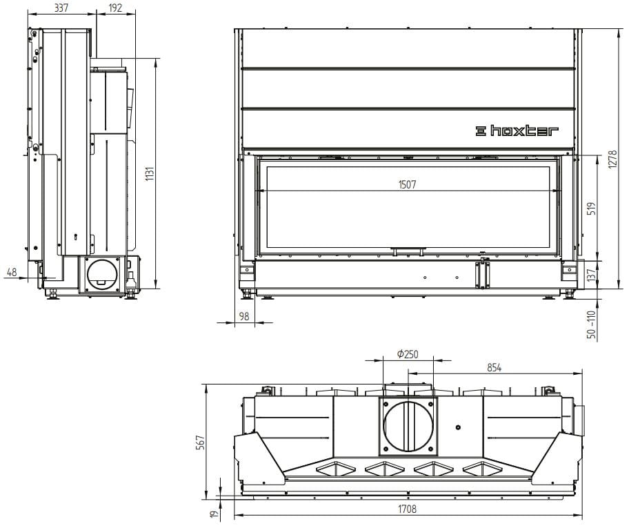 Также все модели Hoxter имеют возможность подвода воздуха на горение извне (из соседнего помещения или улицы). Для этого в конструкции предусмотрен патрубок диаметром 125 или 150 мм.