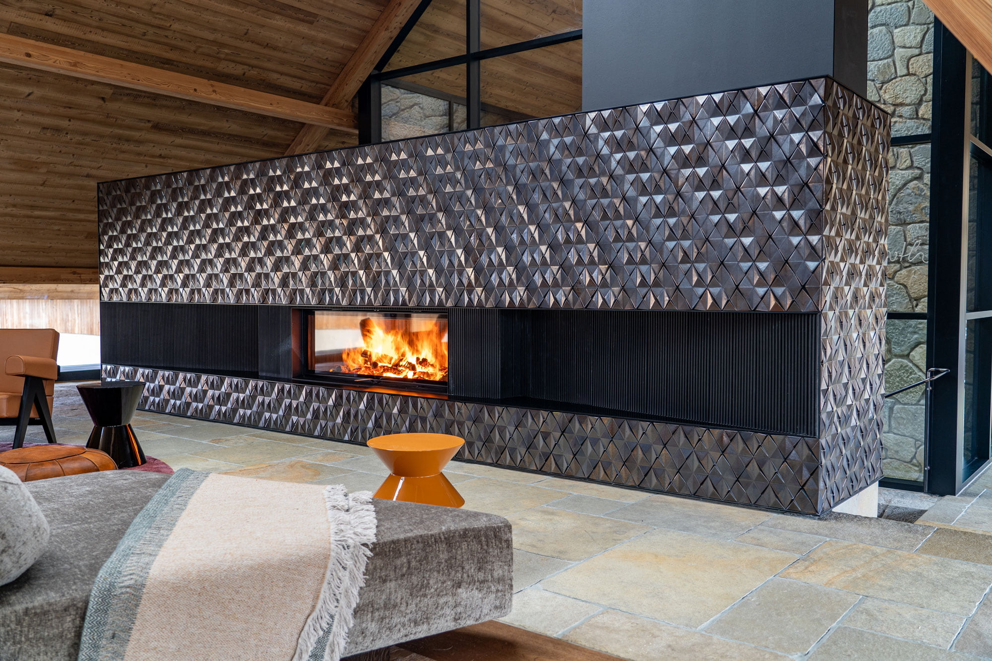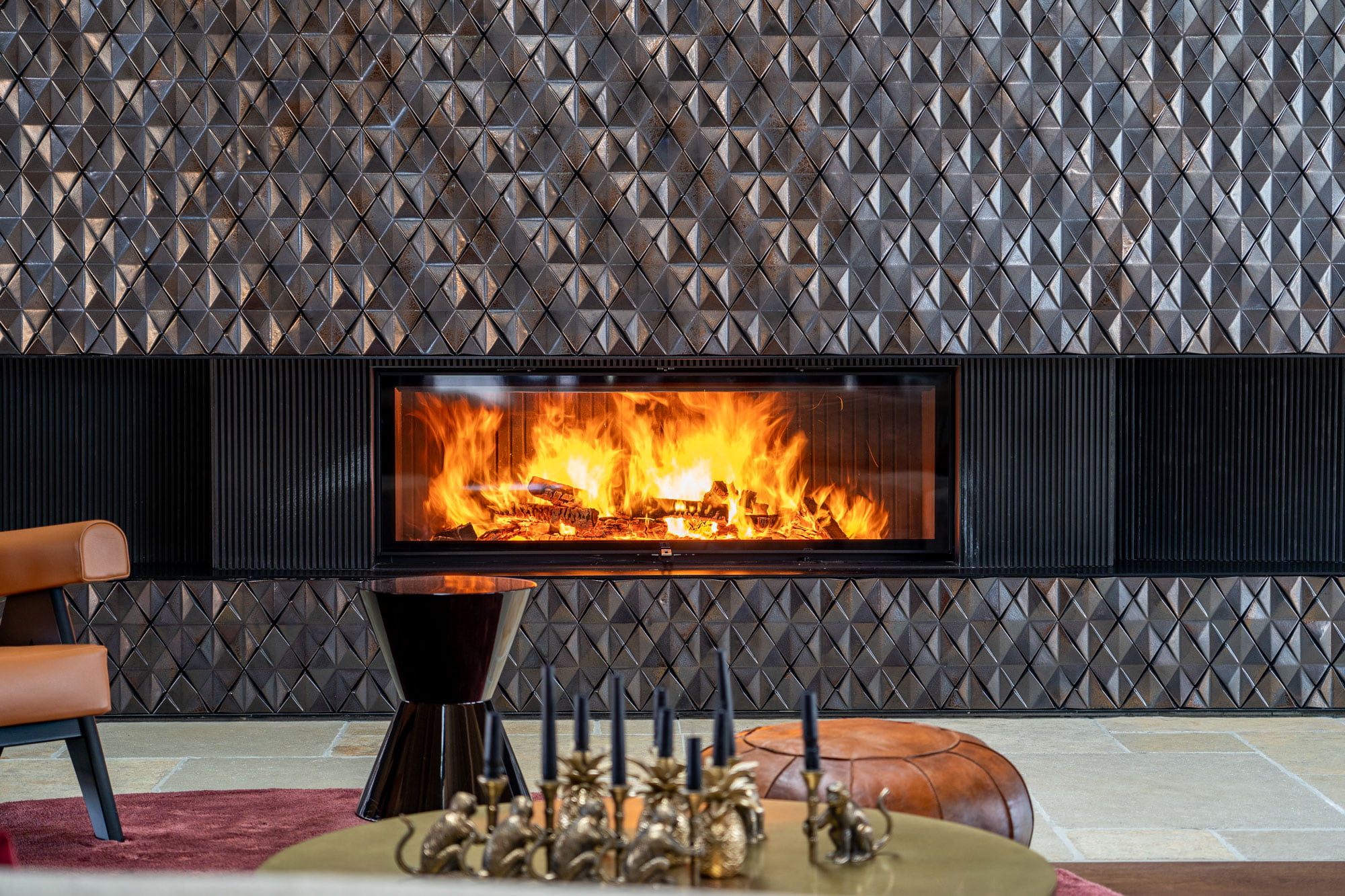 Кроме того, уменьшается передача тепла от стекла в помещение, что делает нахождение возле камина более комфортным. Компания Hoxter в 2012 году впервые на рынке представила двойное остекление топок с цельногнутым угловым стеклом.