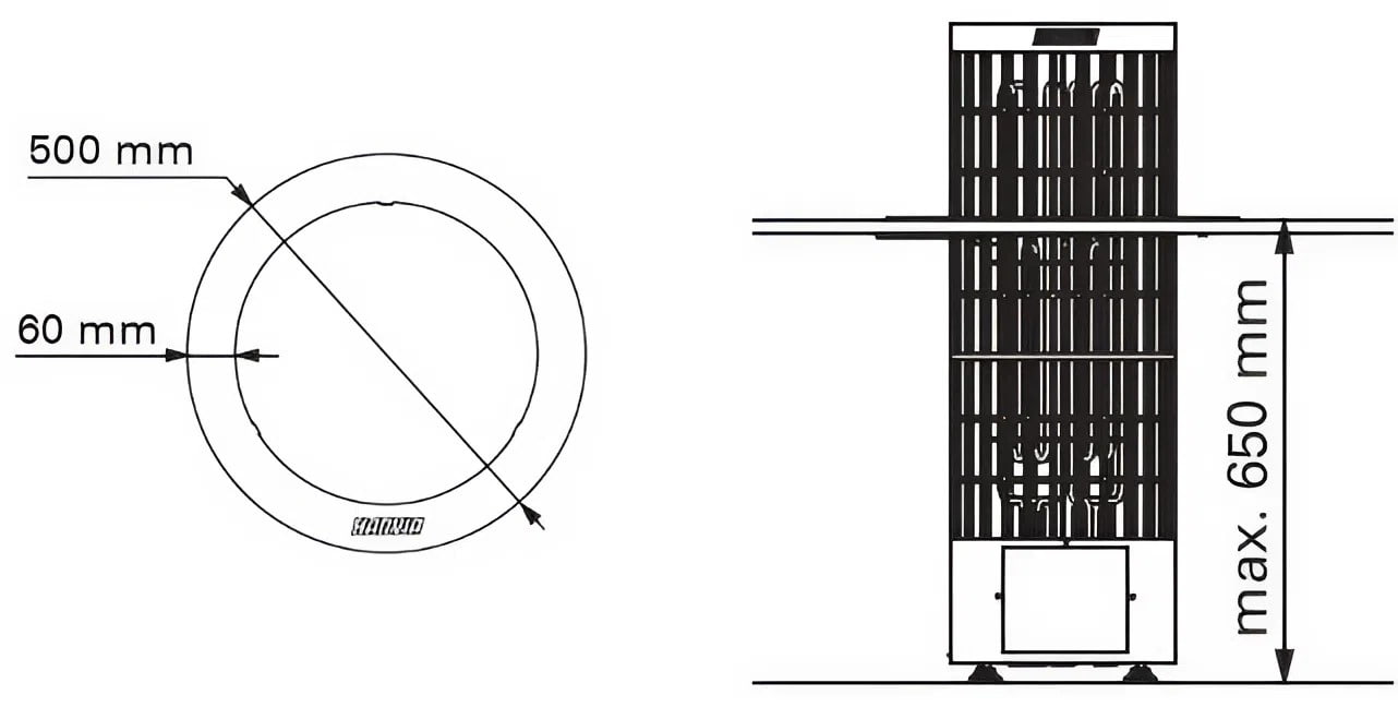 Подходит для электропечей Harvia Cilindro, диаметром корпуса до ~360 мм.