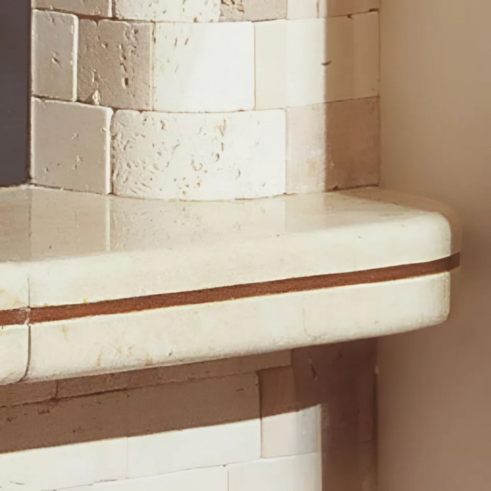 Каминная облицовка EdilKamin Abaco Medio (Каминная облицовка ЭдилКамин Abaco Medio) — высококачественное угловое решение для создания полноценного домашнего очага. Материалом изготовления выступает мозаичный травертин разных оттенков в виде брусков. Под топкой расположена полка из полированного стонелита. Балка выполнена из массива дерева.