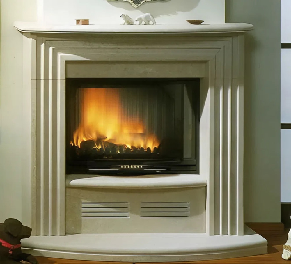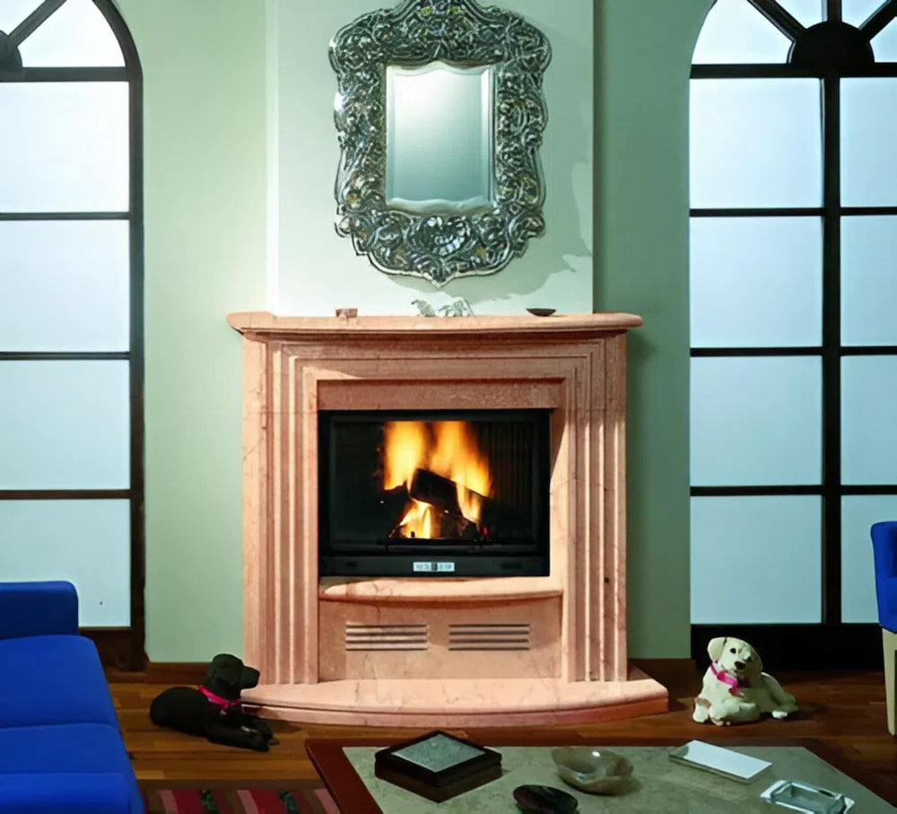 Каминная облицовка EdilKamin Class (Каминная облицовка ЭдилКамин Class) — высококачественное встроенное решение для создания полноценного домашнего очага. Материалом изготовления выступает мрамор Истрия желтого цвета или Перлино в розовом состаренном цвете. Под топкой расположена полированная полка из светлого мрамора. Балка и фасад основания выполнены из массива дерева.