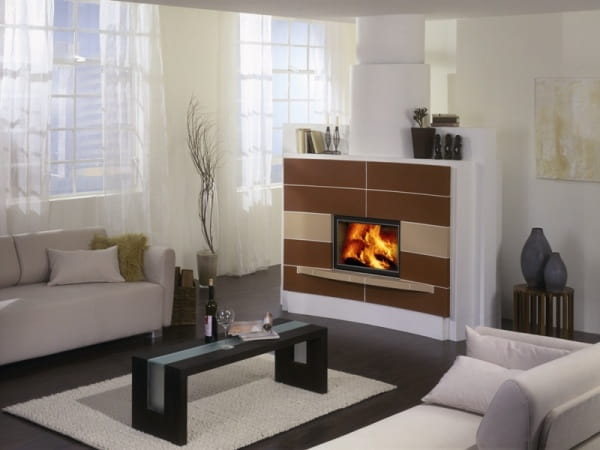 В стандартной комплектации топочная камера всех топок выложена шамотом белого цвета. Чёрный шамот — заказная футеровка, содержит в составе графит, имеет более современный вид и улучшенные характеристики.