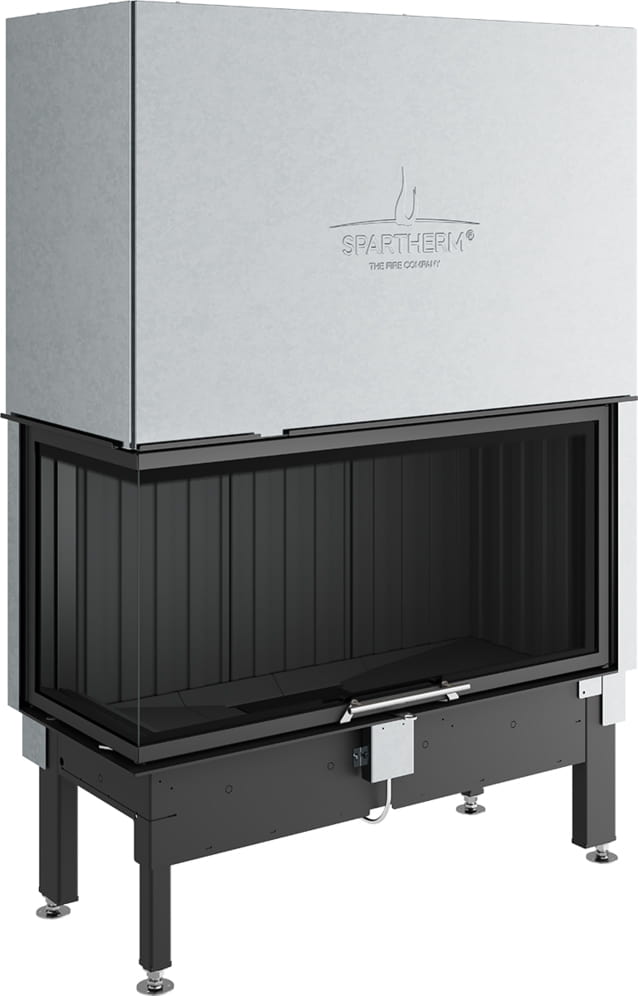 Каминная топка Spartherm Varia 2L-100h/2R-100h 2.0 (Шпартерм Varia 2L-100h/2R-100h 2.0) — это высокоэффективная, современная модель с корпусом из стали. Максимальная мощность равна 16 кВт, чего хватает для обогрева помещения в 400 м³. КПД — 80%. У топки два жаропрочных стекла украшенных по периметру шелкографией (отделка Linear 4S). Дверца с подъёмным механизмом. Второе стекло расположена слева (2L-100h) или справа (2R-100h). Ширина дверцы с фронтальной стороны — 1007 мм, с боковой — 412 мм, высота — 501 мм.
