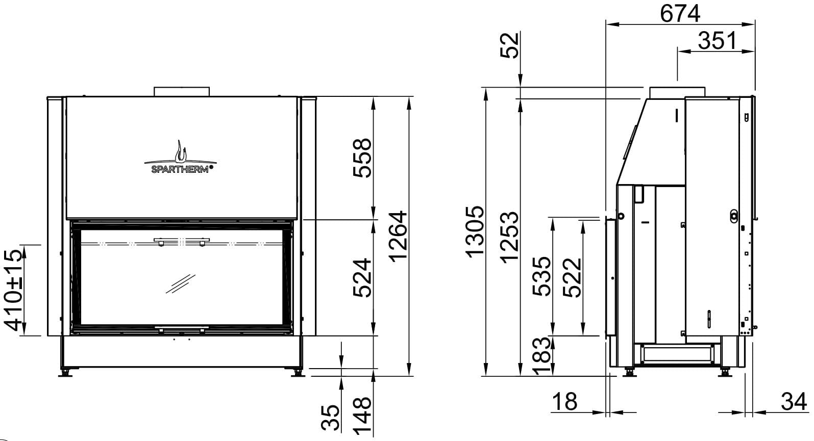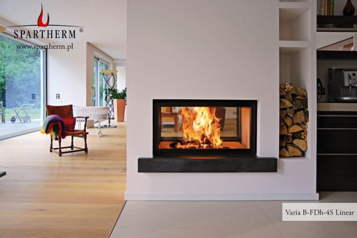 Каминная топка Spartherm Varia B-FDh (Шпартерм Varia B-FDh) — это высокоэффективная, современная модель с корпусом из стали. Максимальная мощность равна 14.3 кВт, чего хватает для обогрева помещения в 355 м³. КПД — 79%. У топки два прямых жаропрочных стекла, образующих сквозной обзор. Стекла по периметру украшены шелкографией (отделка Linear 4S). Фронтальная дверца с подъёмным механизмом. Ширина фронтальной дверцы — 1006 мм, высота — 524 мм.