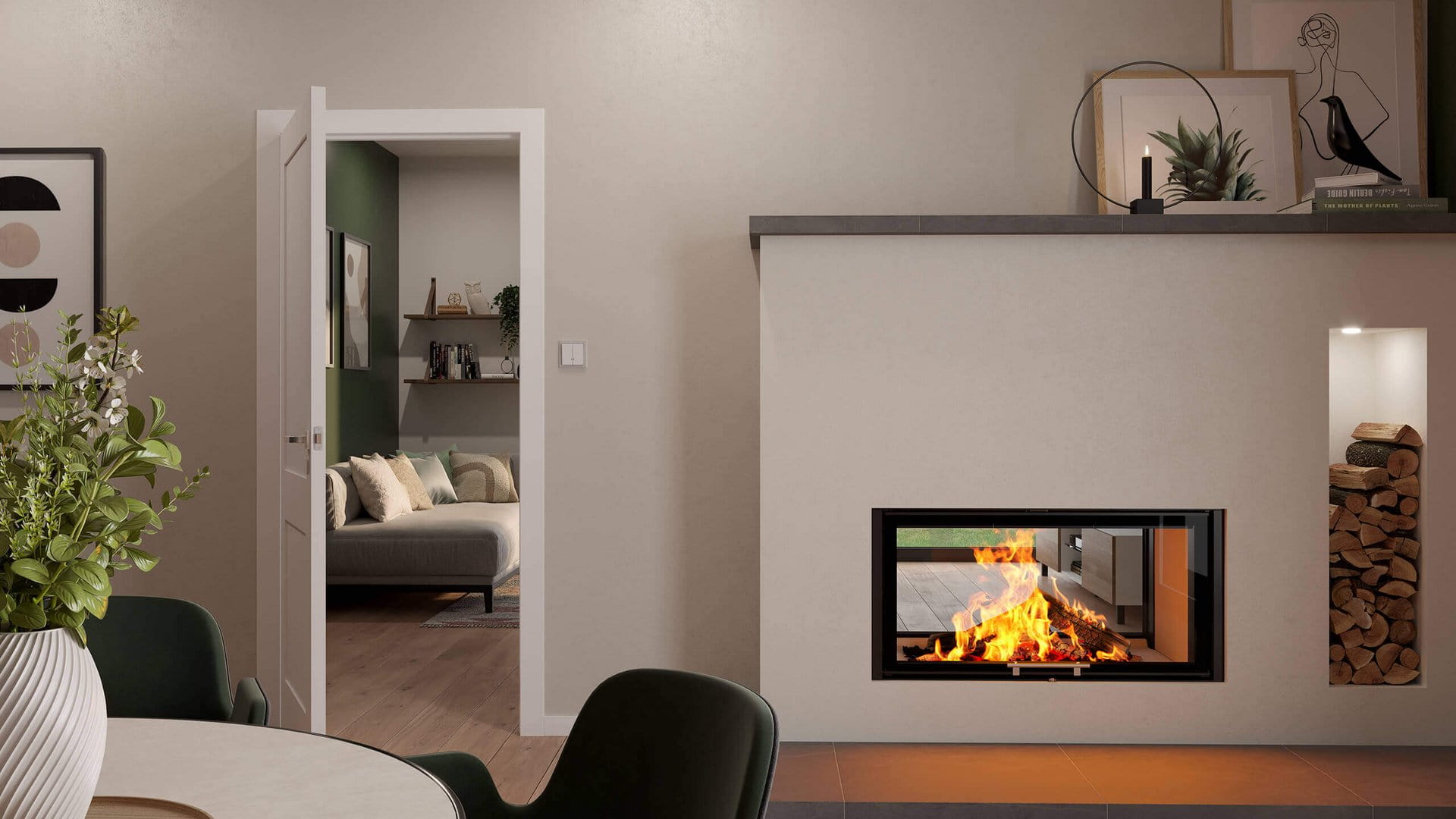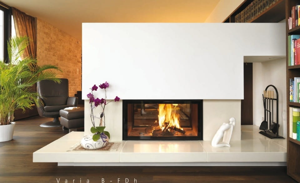- Varia — максимальное разнообразие форм и размеров: фронтальные модели с подъёмным механизмом или левым/правым открыванием двери; двухсторонние (пристенно-угловые) варианты с обоими способами открывания; трёхсторонние топки с подъёмным механизмом или же модели со сквозным обзором, для встраивания между двумя комнатами. Ширина стекла — до 1200 мм. Макс. мощность в диапазоне 9.1—19.5 кВт.