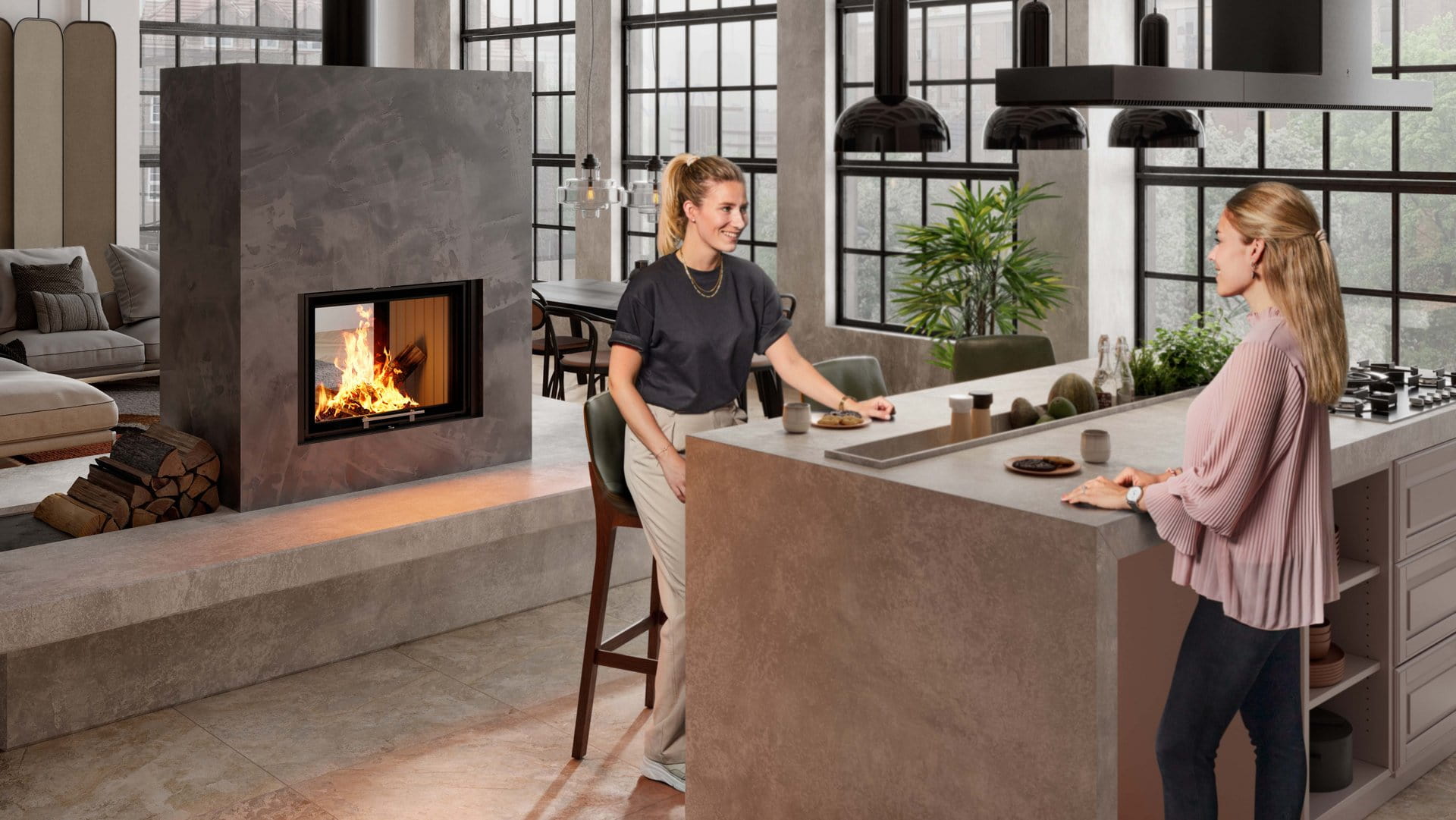 - Varia — максимальное разнообразие форм и размеров: фронтальные модели с подъёмным механизмом или левым/правым открыванием двери; двухсторонние (пристенно-угловые) варианты с обоими способами открывания; трёхсторонние топки с подъёмным механизмом или же модели со сквозным обзором, для встраивания между двумя комнатами. Ширина стекла — до 1200 мм. Макс. мощность в диапазоне 9.1—19.5 кВт.