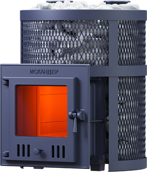 Печь Искандер получила от старших моделей парообразователь прямого нагрева - чугунную каменку имеющую существенную толщину и массу для аккумуляции тепла. Нагреваясь свыше 600С она эффективно нагревает дополнительный заряд, и при попадании воды даёт лёгкий мелкодисперсный пар.