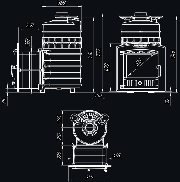 Печь Искандер получила от старших моделей парообразователь прямого нагрева - чугунную каменку имеющую существенную толщину и массу для аккумуляции тепла. Нагреваясь свыше 600С она эффективно нагревает дополнительный заряд, и при попадании воды даёт лёгкий мелкодисперсный пар.