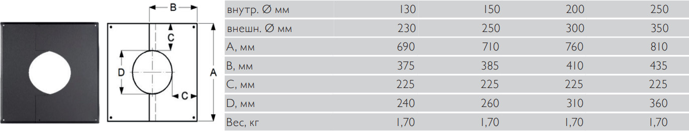 Применяется для декорирования и защиты мест прохода дымоходной трубы через перекрытия и кровлю, а также в качестве дополнительной фиксации оси дымохода. Пластина с ребрами жесткости по периметру выполнена из двух частей, благодаря чему ее можно установить на уже смонтированный дымоход.