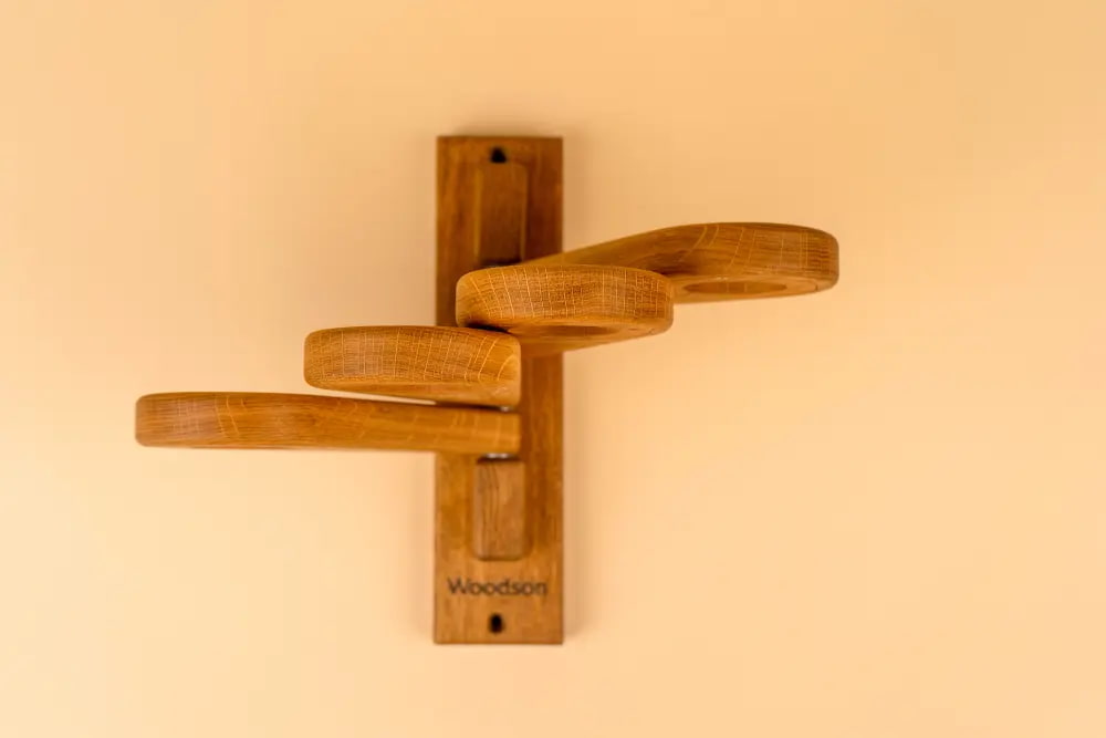 Держатель для веников Woodson Эдельвейс, Дуб (Вудсон Эдельвейс Дуб) — изделие с лопастями для комфортного хранения и просушки четырех веников. Держатель продлит срок службы веников, а также предотвратит появление сырости и плесени. Элемент выполнен из натурального кавказского дуба и покрыт натуральным маслом.