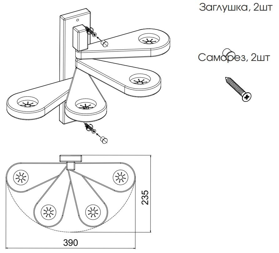 В комплекте с держателем поставляются крепления для монтажа и EVA-коврик, предназначенный для защиты пространства под вениками от дубильных веществ. Размеры коврика: 70x40 см.