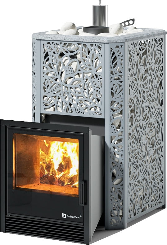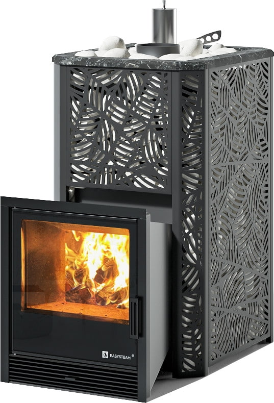 С терморегулирующей задвижкой, позволяющей максимально рационально использовать тепловую энергию и разогревать камни до температур 550-650 °C.