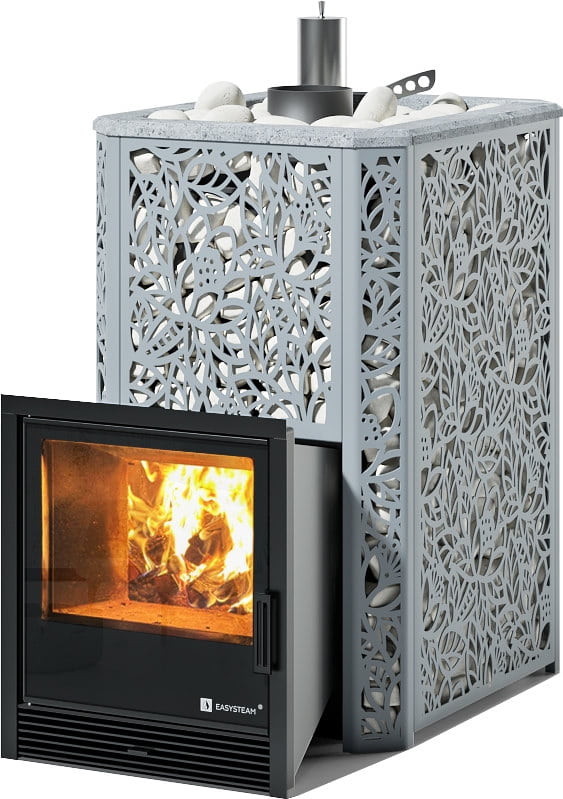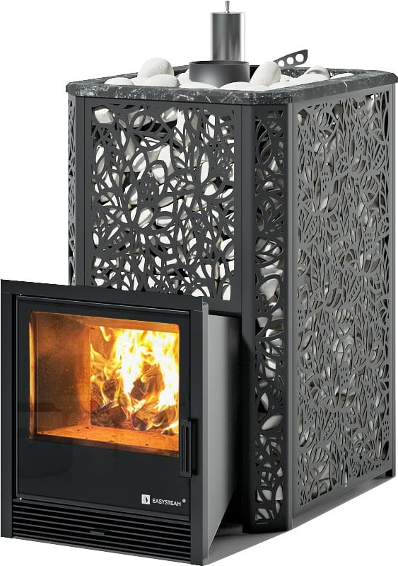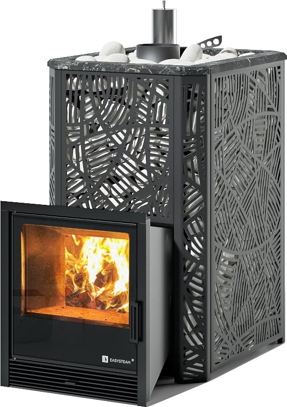 С терморегулирующей задвижкой, позволяющей максимально рационально использовать тепловую энергию и разогревать камни до температур 550-650 °C.