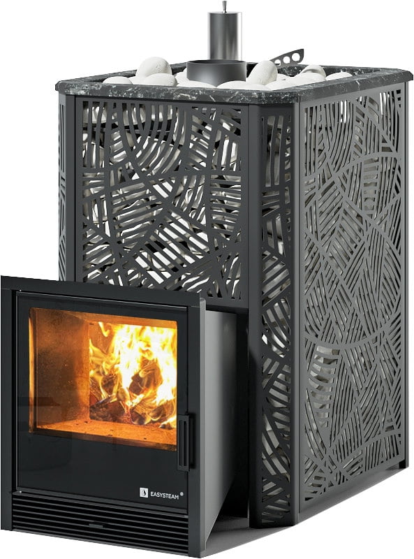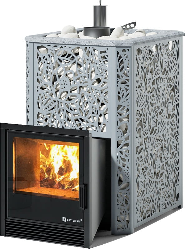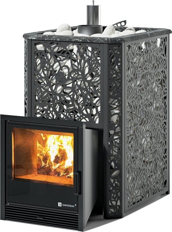 С терморегулирующей задвижкой, позволяющей максимально рационально использовать тепловую энергию и разогревать камни до температур 550-650 °C.
