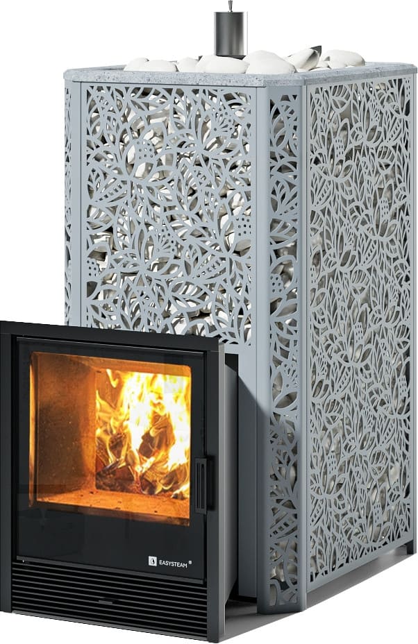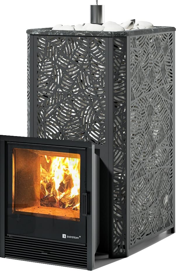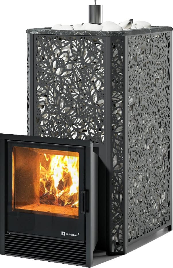 С терморегулирующей задвижкой, позволяющей максимально рационально использовать тепловую энергию и разогревать камни до температур 550-650 °C.