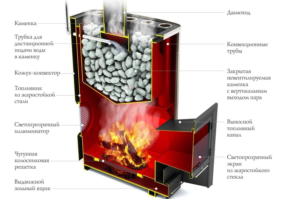 - Печи для бани, работающие на дровах или угле.