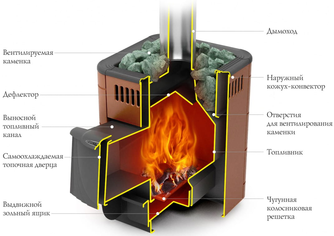 - Печи для бани, работающие на дровах или угле.
