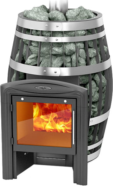Печь предназначена для парных объёмом до 24 м³. Теплонагруженные элементы устройства выполнены из жаростойкой конструкционной стали. Кожух печи исполнен в виде сетки-бочки. Модель комплектуется дверцей с экраном "Витра": жаростойкое стекло Schott Robax диагональю 42 см. Дверца вынесена в смежное с парилкой помещение (предбанник, комната отдыха), откуда и производят обслуживание топочного пространства.