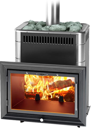Дверца с топливным каналом вынесена в смежное с парилкой помещение, откуда и производят обслуживание топочного пространства. Зольный ящик открывается в сторону — налево или направо по желанию покупателя.