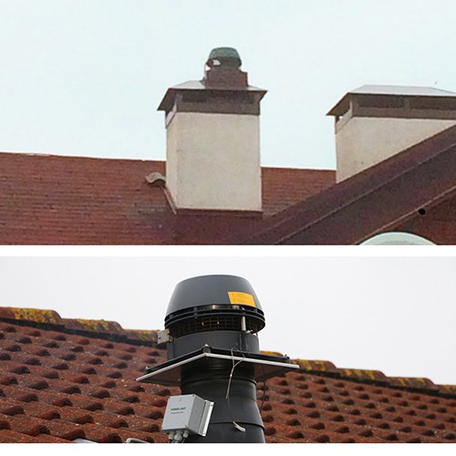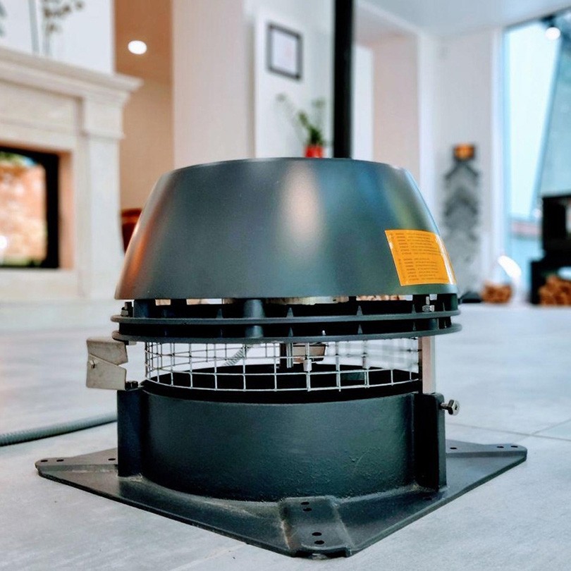 Все эти недостатки решаются установкой дымососа Exodraft. Это устройства, монтируемые в верхней части стального, керамического или кирпичного дымохода, снабженные лопастным мотором, обеспечивающим горизонтальный или вертикальный выброс дымовых газов.