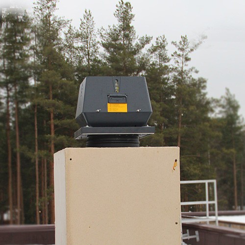 Направление выброса — вертикальное, монтажная площадка с 4-угольным основанием. Максимальная производительность устройства составляет 3400 м³/ч. Напряжение — 230 Вольт. Макс. рабочая температура газов — 250 °C. Степень защиты мотора — IP54.