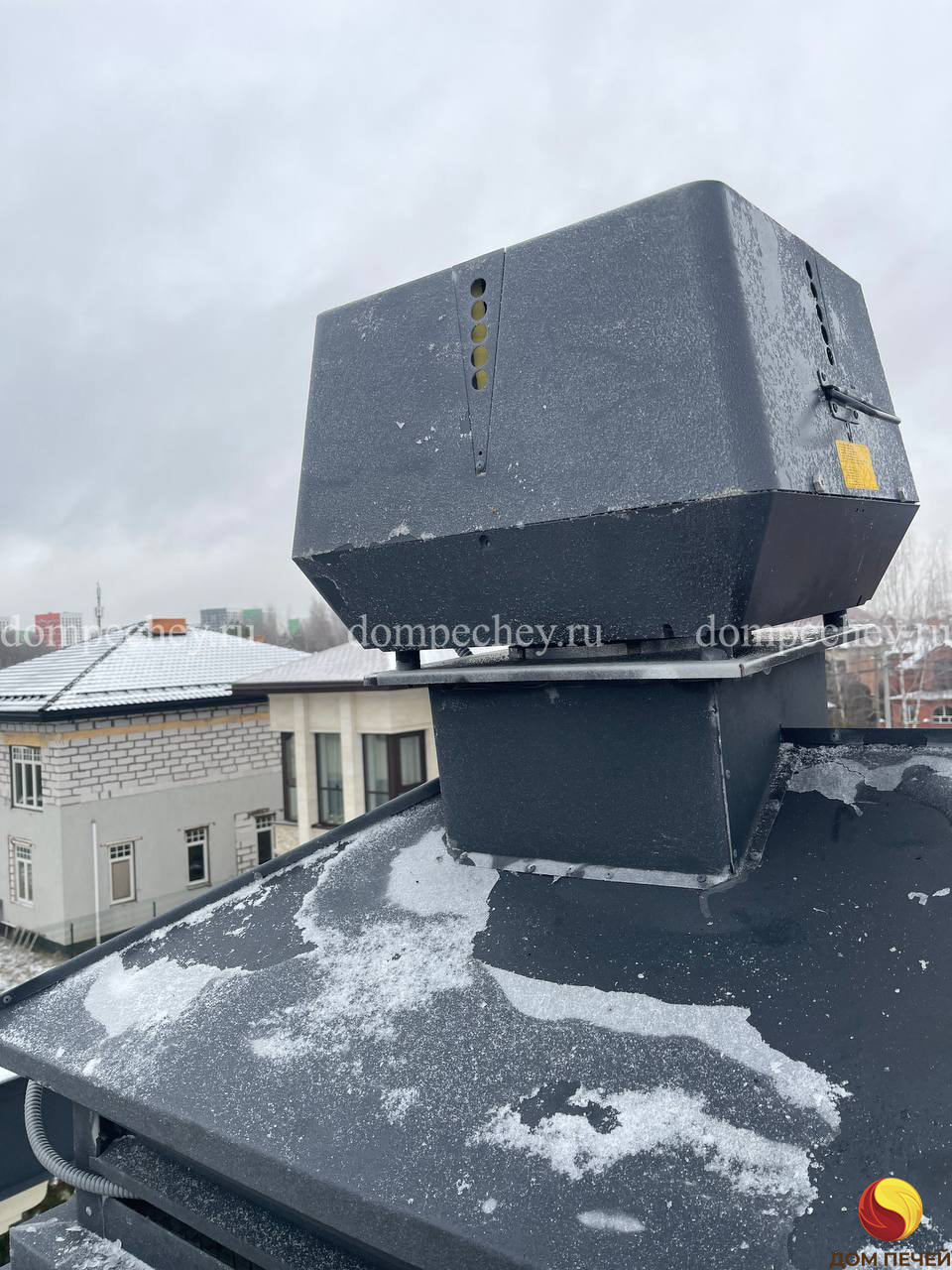 Все эти недостатки решаются установкой дымососа Exodraft. Это устройства, монтируемые в верхней части стального, керамического или кирпичного дымохода, снабженные лопастным мотором, обеспечивающим горизонтальный или вертикальный выброс дымовых газов.