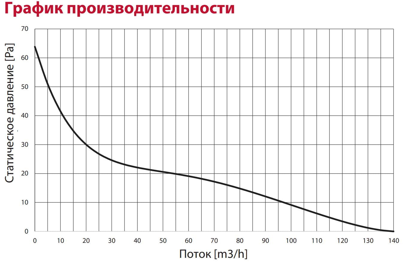 Направление выброса — вертикальное. Максимальная производительность устройства составляет 140 м³/ч, скорость работы — 2000 оборотов в минуту. Напряжение — 230 Вольт. Макс. рабочая температура газов — 250 ºC.