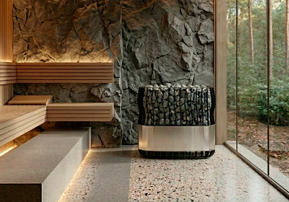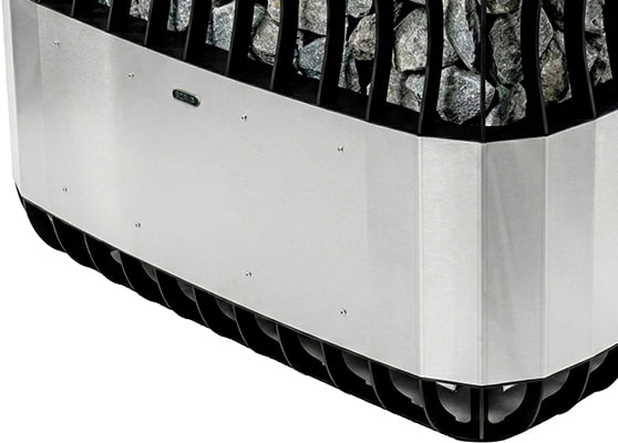 Отдельно стоит отметить эксклюзивный дизайн: электрокаменки Born непохожи на другие. Корпус устройств выполнен из нержавеющей стали и может быть украшен элементами термоясеня. Часто печь имеет вертикальную форму, что способствует быстрому разогреву помещения.