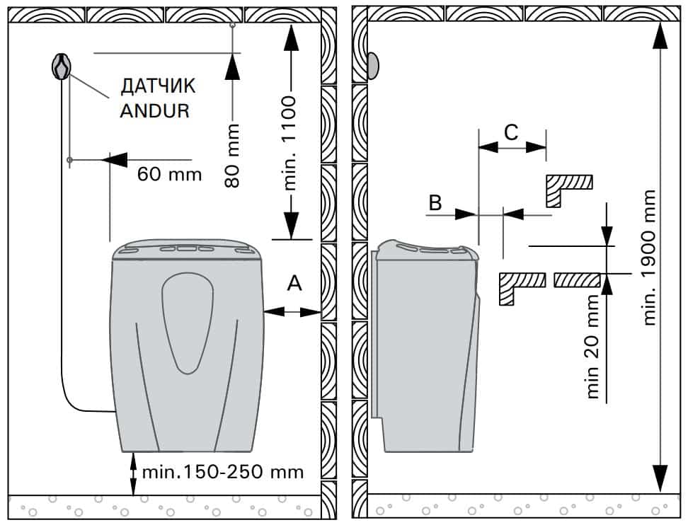 Форма корпуса помогает определить место установки изделия, разделяя их на напольные (в том числе угловые) и настенные, которые экономят полезную площадь. Стоит отметить электрические каменки для встраивания в нижний полок.
