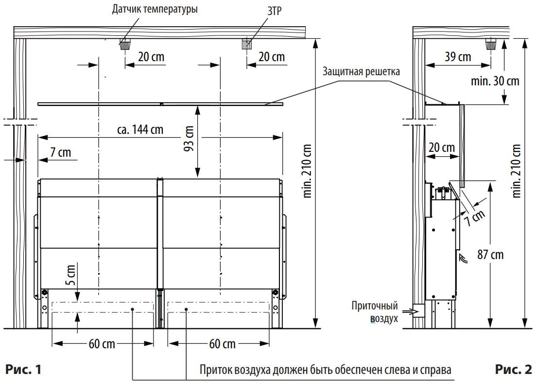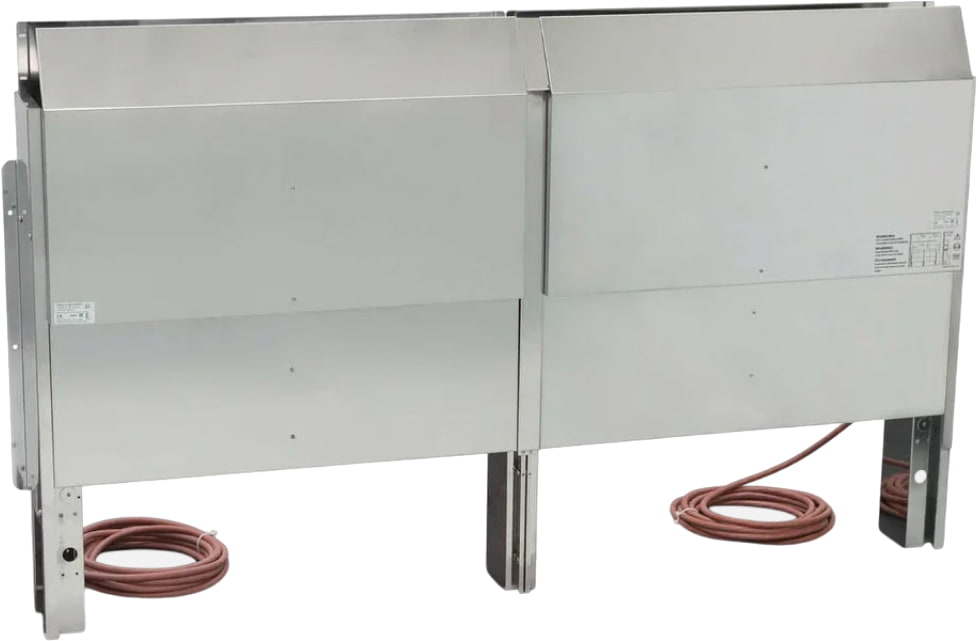 Отличительной особенностью данной печи является её крайне малая глубина в 200 мм, что позволит установить модель за фальш-стеной, экономя тем самым полезное пространство парной и предотвращая возможность ожога от корпуса. В помещении останется только воронка для воды и защитная решетка.