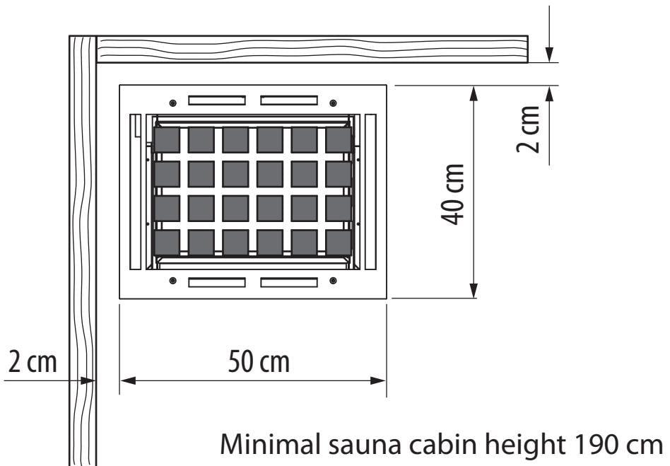 Каменка вмещает 40 кг камней. Специально для данной серии изготавливаются цельные кубические камни для заполнения верхней части каменки окрашенные в цвет корпуса. В данной модели они поставляются в комплекте. Между нагревательными элементами и камнями нет прямого контакта, что увеличивает эффективность нагрева и продлевает срок службы изделия.
